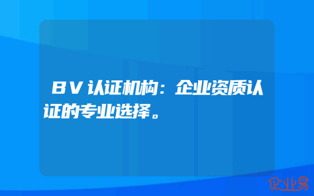 - BV认证机构:企业资质认证的专业选择一、BV认证机构简介随着市场经济的发展,企业间的竞争加剧,拥有专业的资质认证成为了企业赢得信任和优势的关键。在这个背景下,BV认证机构凭借其公正、权威的特点,成为了众多企业寻求资质认证的首选机构。《p》B