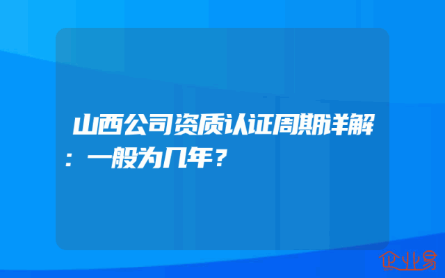 - 山西公司资质认证周期详解:一般为几年?一、资质认证周期概述在山西省,公司资质认证周期是指企业获得某项资质后,需要按照一定的时间间隔进行复审或重新认证的时间段。不同的资质认证有不同的周期要求,这对于企业来说是一项重要的管理任务。二、各类资质认