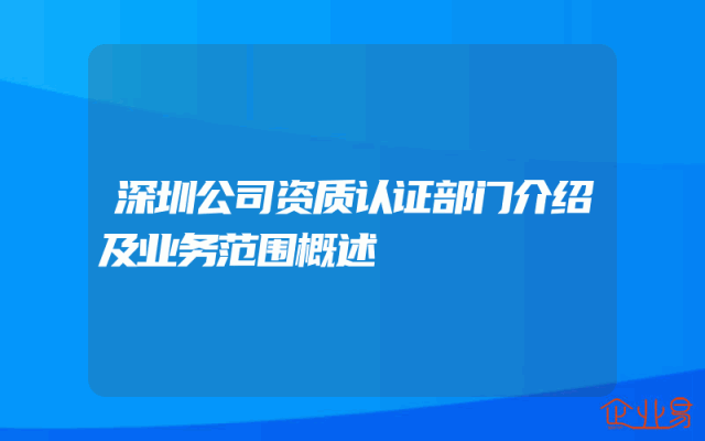 - 深圳公司资质认证部门介绍及业务范围概述深圳公司资质认证部门简介深圳市作为中国的经济特区,一直以来都是企业发展的热土。为了规范市场,确保企业合法合规经营,深圳设立了一系列公司资质认证部门。这些部门负责监
