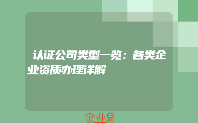 - 认证公司类型一览:各类企业资质办理详解一、企业资质办理概述在中国,企业资质办理是企业管理的重要环节,也是企业合法经营的必要条件。随着市场经济的发展,各种类型的企业层出不穷,不同类型的企业的资质办理也存在差异。本文将详细介绍各类企业资质的办理