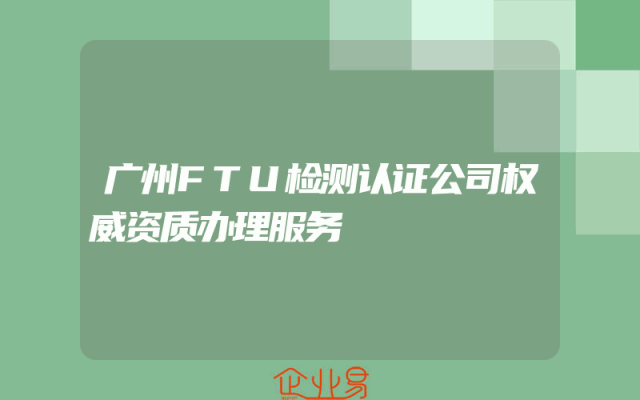 - 广州FTU检测认证公司权威资质办理服务一、专业资质办理团队在广州,FTU检测认证公司拥有专业的资质办理团队,致力于为企业提供全方位、高效的资质办理服务。我们的团队具备丰富的经验和专业知识,熟悉各类企业资质办理的政策和流程。二、全面的资质办理