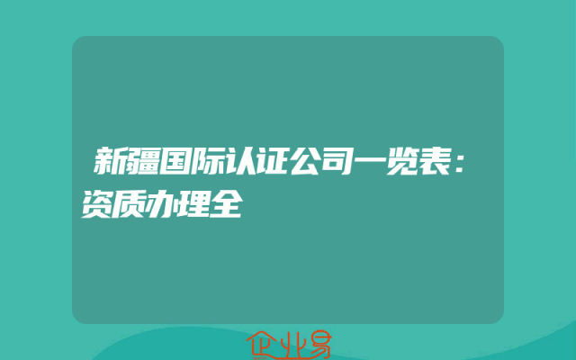 - 新疆国际认证公司一览表:资质办理全解析一、新疆国际认证公司概述新疆地域辽阔,企业众多,国际认证公司作为提供认证服务的重要机构,在新疆也有众多分布。这些公司通过提供资质认证服务,帮助企业提升管理水平,增强市场竞争力。下面就来详细解析新疆国际认
