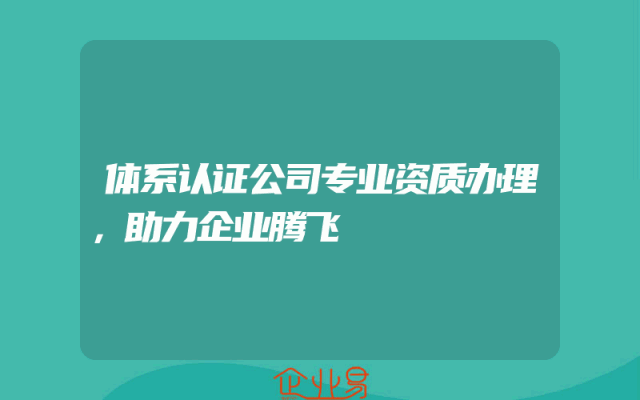 - 体系认证公司专业资质办理,助力企业腾飞一、理解企业资质的重要性在当今竞争激烈的市场环境中,企业的资质认证对于其长期发展而言至关重要。它不仅体现了企业的专业能力和服务水平,更是企业参与市场竞争的“通行证”。体系认证作为证明企业管理和运