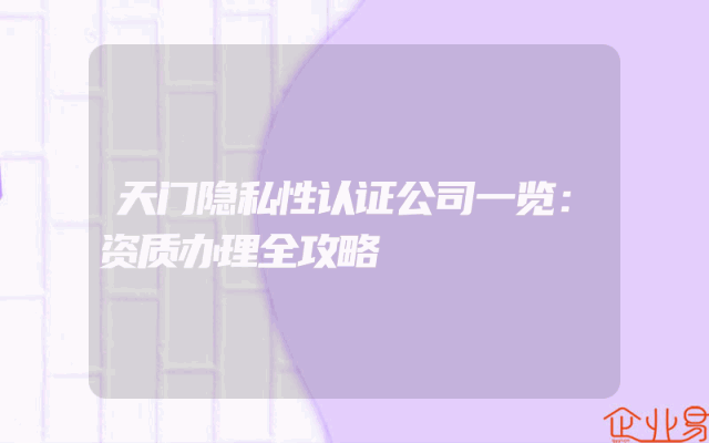 - 天门隐私性认证公司一览:资质办理全攻略了解天门隐私性认证公司的重要性在当今的商业环境中,随着数据安全与隐私保护逐渐成为社会关注的热点,企业对于隐私性认证的需求愈发强烈。天门地区的企业若希望在这一领域