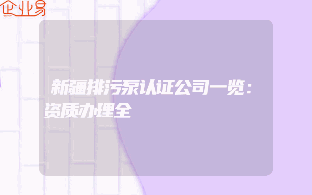 - 新疆排污泵认证公司一览:资质办理全解析一、新疆排污泵认证公司的基本情况新疆作为我国西部地区的重要省份,其环保产业发展日益受到关注。其中,排污泵作为环保领域的关键设备,其认证公司承担着重要的责任。在新疆,有多家从事排污泵认证的公司,这些公司在