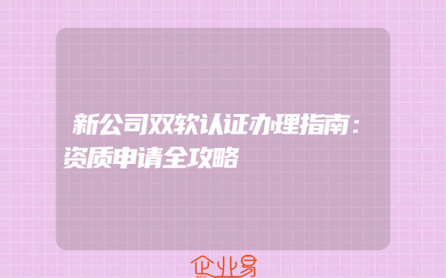 - 新公司双软认证办理指南:资质申请全攻略一、了解双软认证双软认证是指软件企业的认证和软件产品的认证,是中国政府对软件产业实施的一项扶持与管理工作。对于新成立的公司来说,进行双软认证是提升企业形象、增强市场竞争力的重要途径。二、准备资质申请材料