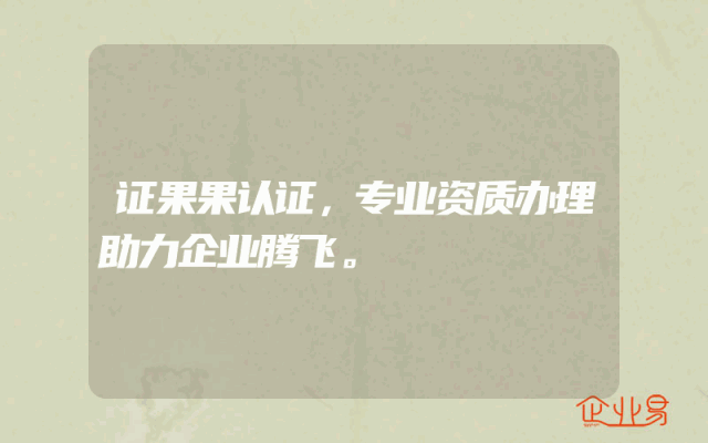 - 证果果认证:专业资质办理助力企业腾飞一、证果果认证的重要性在当今竞争激烈的市场环境下,企业的成长与发展离不开各种资质认证的支撑。证果果认证作为企业资质办理的专业机构,其重要性不言而喻。它不仅能够帮助企业提高自身的核心竞争力,还能够为企业的稳