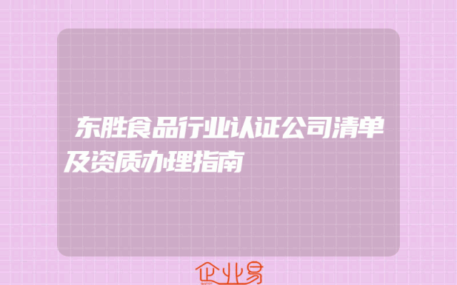 - 东胜食品行业认证公司清单及资质办理指南一、东胜食品行业认证公司清单在东胜地区,食品行业认证公司众多,各有优势与特色。其中,包括从原料生产到食品加工的各个阶段。主要的认证公司如食品安全认证中心、质量保证体系认证机构等,为食品企业提供全方位的认