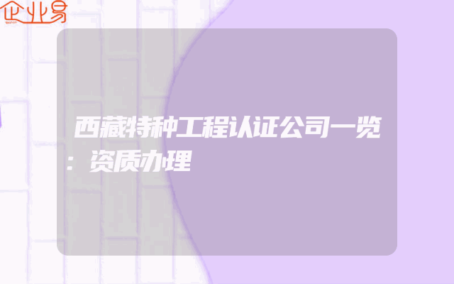 - 西藏特种工程认证公司一览:资质办理解析一、西藏特种工程认证概述西藏,这片神秘的雪域高原,近年来在工程领域不断拓展,尤其在特种工程方面取得显著进展。特种工程涉及到诸多领域的专业技能,需要专业资质的认证。本文将为您详细介绍西藏地区的特种工程认证
