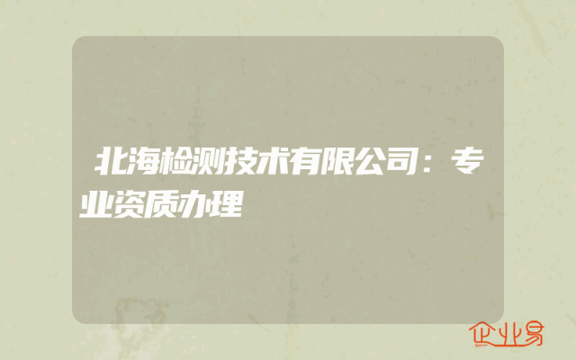 - 北海检测技术有限公司:专业资质办理解析一、公司背景与资质概述北海检测技术有限公司是一家专注于检测领域的科技企业,致力于为客户提供全方位、高质量的检测服务。随着业务的不断拓展和深化,公司对于资质办理的需求也日益凸显。资质办理不仅关乎企业的合法