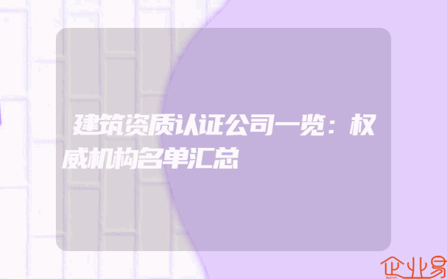 - 建筑资质认证公司一览:权威机构名单汇总一、引言在建筑行业中,资质认证是衡量企业实力与信誉的重要标准。随着市场的不断发展和规范化,越来越多的建筑资质认证公司涌现出来,为广大企业提供专业的服务。本文将为您呈现建筑资质认证公司的权威机构名单,以便
