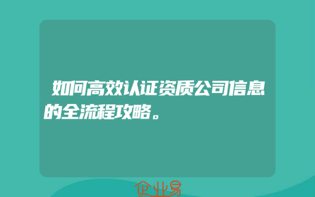 - 如何高效认证资质公司信息的全流程攻略。