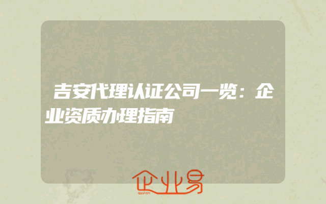 - 吉安代理认证公司一览:企业资质办理指南