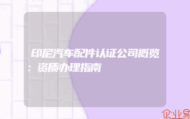- 印尼汽车配件认证公司概览:资质办理指南