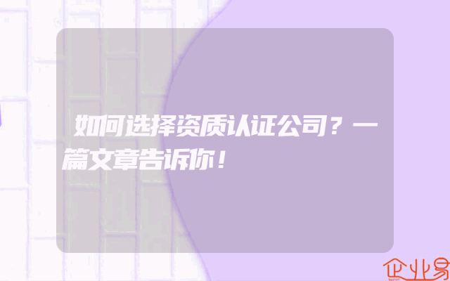- 如何选择资质认证公司?一篇文章告诉你!