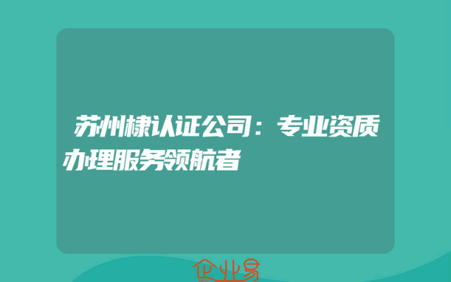 - 苏州棣认证公司:专业资质办理服务的领航者一、引言随着市场竞争的日益激烈,企业对于资质办理的需求愈加迫切。在这一背景下,苏州棣认证公司凭借其专业的资质办理服务,成为了行业内的领航者。该公司致力于为企业提供全方位、高效、便捷的资质办理服务,助力