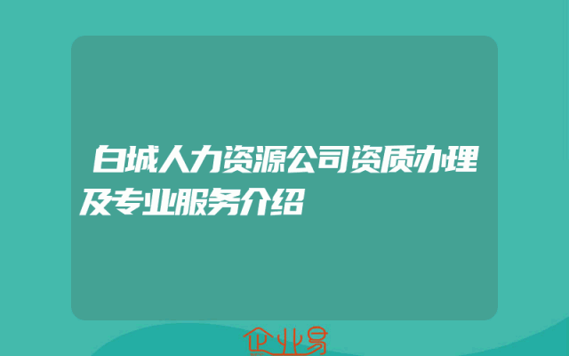 - 白城人力资源公司资质办理及专业服务介绍一、资质办理简介随着人力资源行业的发展迅速,专业的资质办理对于确保企业合规运营尤为重要。在白城地区,人力资源公司的资质办理工作关系到企业能否为市场提供专业的人力资源服