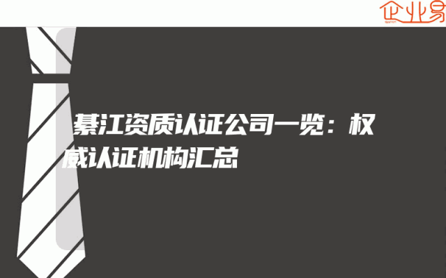 - 綦江资质认证公司一览:权威认证机构汇总一、引言在綦江地区,随着企业数量的不断增加,企业对资质认证的需求也日益增长。为了满足这一需求,众多权威认证机构纷纷在綦江设立服务点,为企业提供全方位的资质认证服务。本文将对这些权威认证机构进行汇总,以便