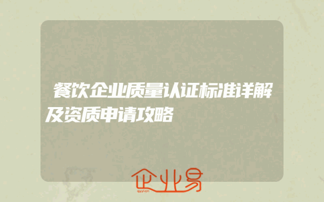 - 餐饮企业质量认证标准详解及资质申请攻略