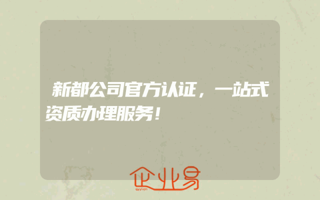 - 新都公司官方认证:一站式资质办理服务!一、新都公司官方认证的重要性在当今竞争激烈的市场环境下,企业的合规运营显得尤为重要。新都公司作为行业内领先的服务提供商,一直致力于为企业提供全方位的支持和帮助。其中,官方认证作为企业发展的重要保障,其重