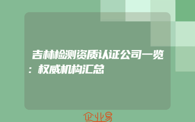 - 吉林检测资质认证公司一览:权威机构汇总一、引言随着经济的快速发展,检测行业在吉林省得到了广泛的关注和支持。为了满足不同行业和企业的检测需求,众多的检测资质认证公司在吉林地区涌现出来。本文将对这些权威机构进行简要汇总,以便企业和个人在选择时能