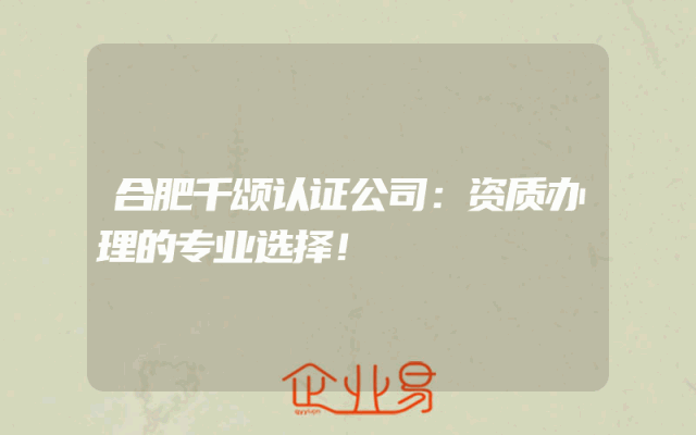 - 合肥千颂认证公司:资质办理的专业选择!