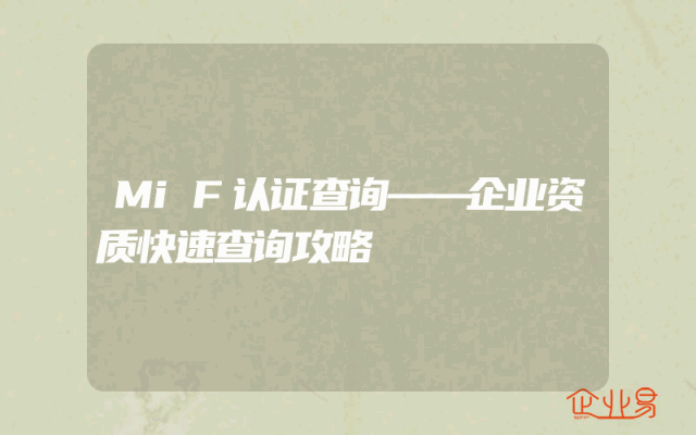 - MiF认证查询——企业资质快速查询攻略