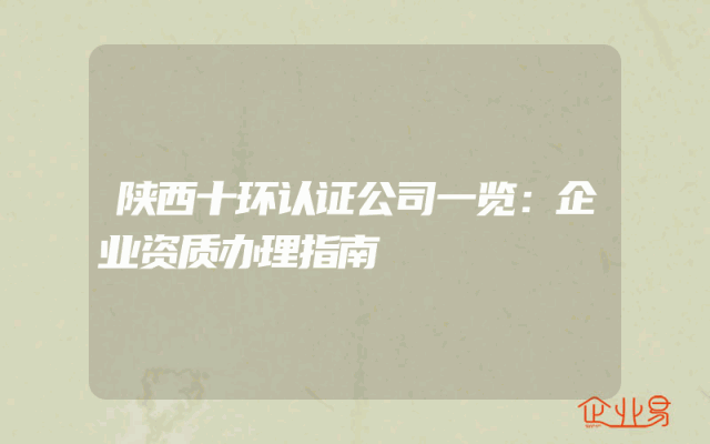 - 陕西十环认证公司一览:企业资质办理指南