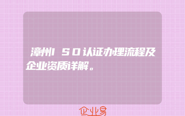 - 漳州ISO认证办理流程及企业资质详解。