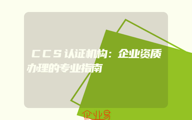 - CCS认证机构:企业资质办理的专业指南一、了解CCS认证机构CCS认证机构是专业从事各类企业资质审核与认证的权威机构。随着市场竞争的日益激烈,企业对于资质办理的需求越来越高。了解CCS认证机构的职能与业务范围,对于想要提升企业竞争力、拓展业
