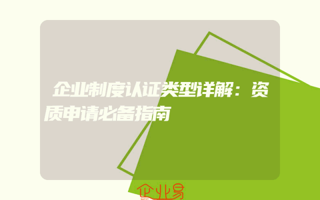 - 企业制度认证类型详解:资质申请必备指南在现代企业运营过程中,各类制度认证已成为企业合规经营、提升竞争力的重要保障。不同的企业制度认证类型对应着不同的资质申请要求和流程。本文将详细介绍几种常见的企业制