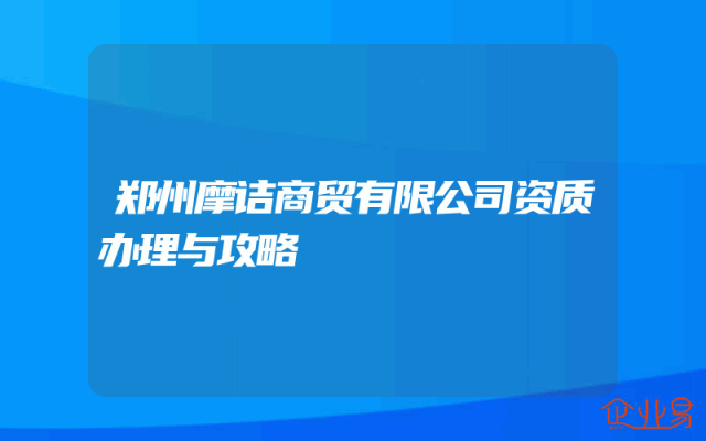 - 郑州摩诘商贸有限公司资质办理与攻略