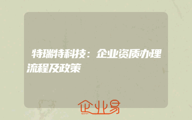 - 特瑞特科技企业资质办理流程及政策解析一、特瑞特科技企业资质的重要性在当今竞争激烈的市场环境下,企业资质是企业展示实力、信誉和潜力的关键要素。特瑞特科技公司要想在行业内取得优势地位,深入了解并顺利办理各类企业资质显得尤为重要。资质齐全的企业更