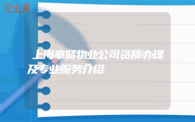 - 上海奉贤物业公司资质办理及专业服务介绍