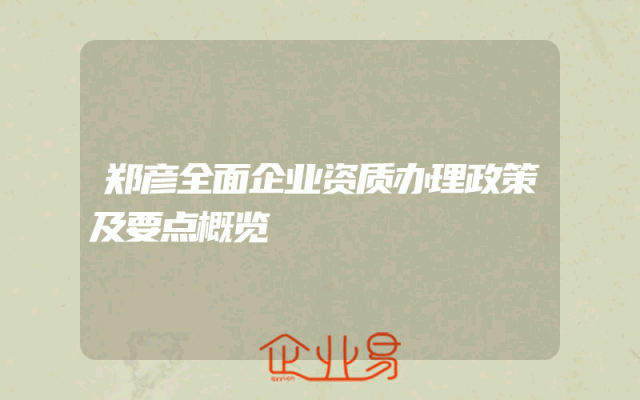 - 郑彦全面企业资质办理政策及要点概览