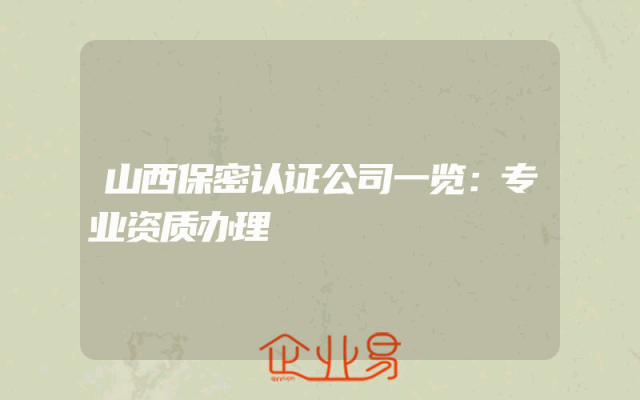 - 山西保密认证公司一览:专业资质办理