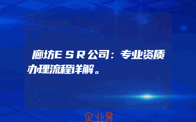 - 廊坊ESR公司:专业资质办理流程详解。