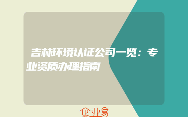 - 吉林环境认证公司一览:专业资质办理指南