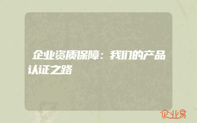 - 企业资质保障:我们的产品认证之路