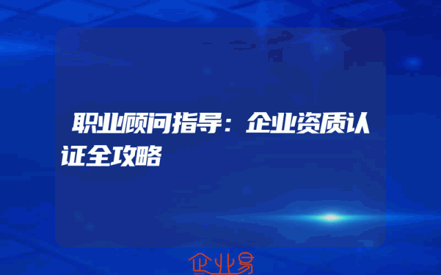 - 职业顾问指导:企业资质认证全攻略