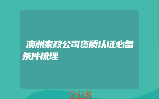 - 澳洲家政公司资质认证必备条件梳理一、了解澳洲家政公司资质认证的重要性在澳洲开展家政服务业务,公司必须满足一定的资质认证要求。这些要求不仅涉及到公司的运营能力和服务质量,也关乎消费者的权益保障。因此,对于想要进入这一领域的公司来说,了解并满足
