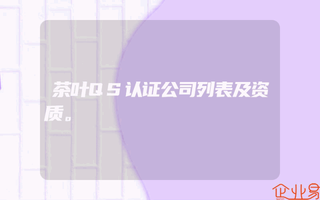 - 茶叶QS认证公司列表及资质解析一、QS认证概述QS认证是中国政府为保证食品安全而实施的一项强制性认证制度。对于茶叶行业而言,获得QS认证是确保产品质量和安全的重要标识。许多茶叶公司为了提升信誉和竞争力,都会积极申请QS认证。二、茶叶QS认证