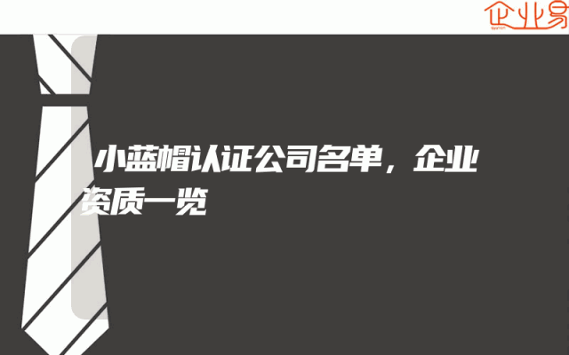 - 小蓝帽认证公司名单及企业资质一览一、小蓝帽认证概述小蓝帽认证是针对企业服务行业的质量认证体系,旨在提高服务质量和标准,确保客户权益。获得小蓝帽认证的企业,在业界具有卓越的信誉和影响力。下面列出的小蓝帽认证公司名单及其企业资质,是经过严格筛选