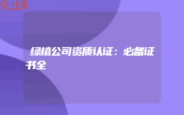 - 绿植公司资质认证:必备证书全解析一、绿植公司资质认证的重要性在当今社会,绿化行业不断发展,绿植公司的资质认证逐渐成为公司开展业务的基础。资质认证不仅证明了公司具备从事绿化工程的能力,也体现了公司对专业技术和质量的承诺。因此,理解并获取必要的