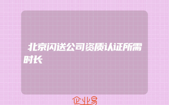 - 北京闪送公司资质认证所需时长解析一、资质认证的重要性对于在北京运营的闪送公司而言,资质认证是确保企业合法运营、提升服务质量的关键环节。随着市场需求的增长和行业监管的加强,资质认证的重要性愈发凸显。二、资质认证的种类与时长闪送公司涉及