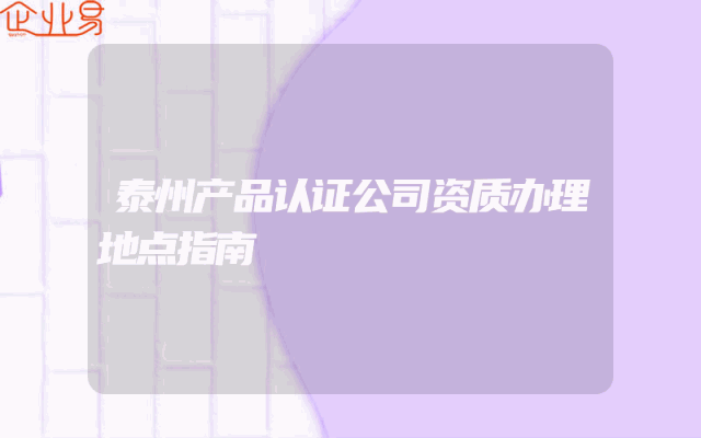 - 泰州产品认证公司资质办理地点指南一、了解泰州产品认证公司资质办理的重要性在如今竞争激烈的市场环境下,企业为了提升产品品质与信誉,往往需要寻求专业的产品认证服务。而泰州作为一个经济发达的地区,拥有多家产品认证公司。了解这些公司的资质办理地点,