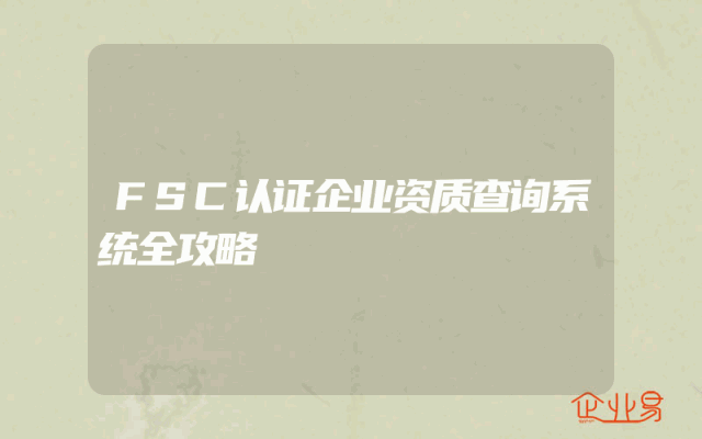 - FSC认证企业资质查询系统全攻略