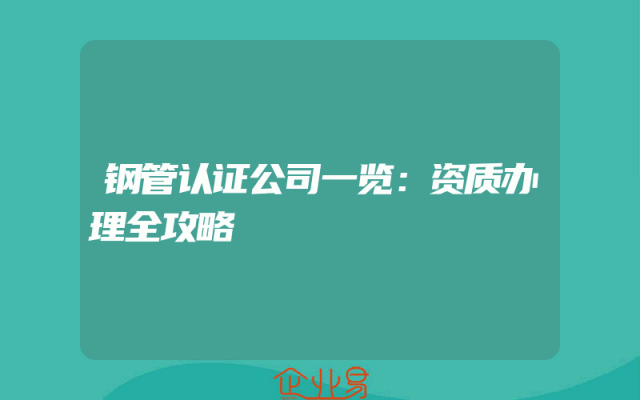 - 钢管认证公司一览:资质办理全攻略