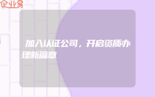 - 加入认证公司,开启资质办理新篇章