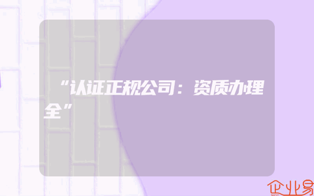 - “认证正规公司:资质办理全”